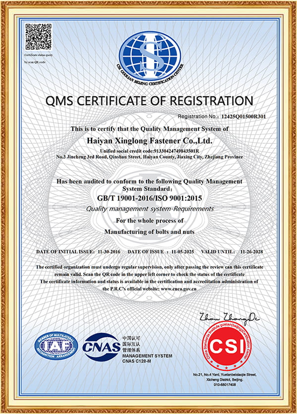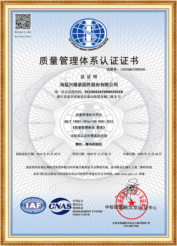 HAIYAN XINGLONG FASTENER CO.,LTD was established in 1994. It is a professional China OEM/ODM Hexagon Bolts Yellow Zinc Plated M5-M24,3/16-1’ Suppliers and a self-operated import and export enterprise approved by the Ministry of Foreign Trade.It has invested a lot of money to introduce technology, equipment transformation, workshop expansion and factory environment construction. The company has more than 100 cold rutting machines and dozens of ancillary equipment, with a monthly output of 800-1000 tons and an annual output of about 10,000 tons. The company specializes in the production of various screws, Hexagon Bolts Yellow Zinc Plated M5-M24,3/16-1’ and bolts, among which DIN603, 84, 85,, 7985, 963, 965, 966, etc. are the main products. our Hexagon Bolts Yellow Zinc Plated M5-M24,3/16-1’ and other products are mainly sold to EU countries, and now it has also developed the Middle East, North and South America and some African countries.